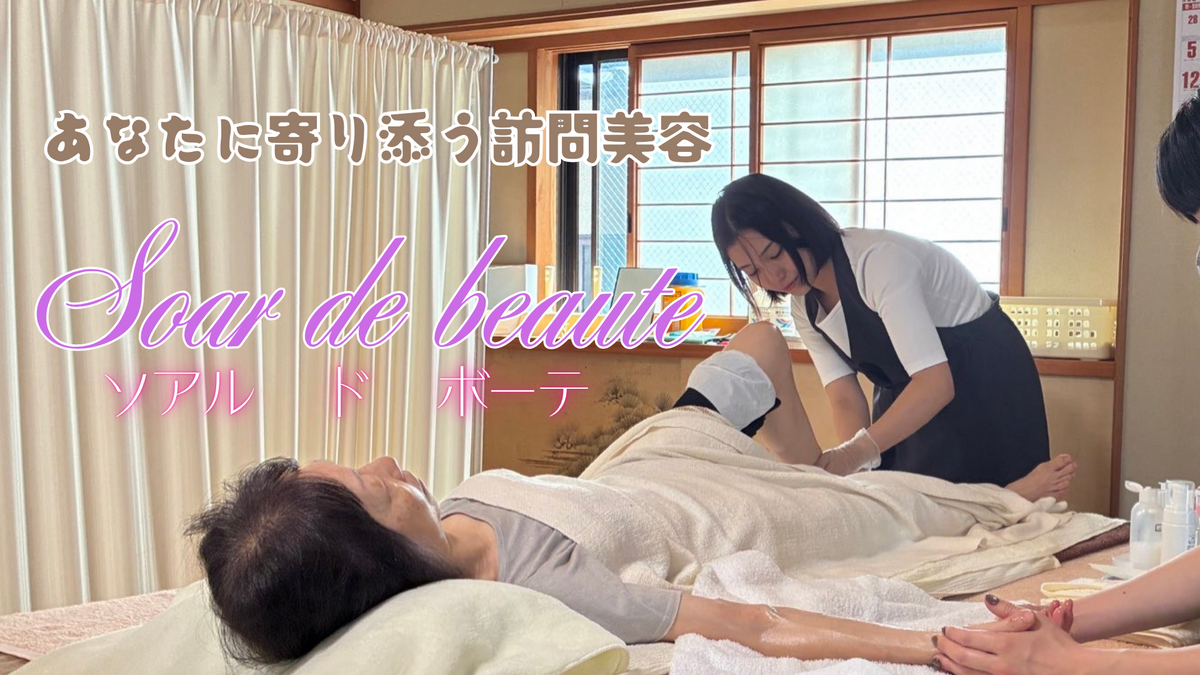 大分市中津留を拠点に活動する「soar de beauté(ソア・ド・ボーテ)」は、ご自宅や介護施設、病院などへお伺いして施術を行う訪問美容サロンです。外出が難しい方や、ゆっくりとした空間で美容を楽しみたい方に向けて、プロの技術と心を込めたケアをお届けしています。カット・カラー・フェイシャルエステ・ハンドケア・フットケア・ネイルケア・ドライヘッドスパなど、幅広いメニューをご用意。高齢の方や介護が必要な方にも安心してご利用いただけるよう、衛生管理を徹底し、やさしい施術を心がけています。